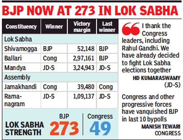 Karnataka Election Results Bjp Set For Landslide Win India News Times Of India - The lok sabha election results are expected to impact power equations in the karnataka assembly owing to differences within the ruling coalition partners and the triumph of bjp in many parts of old mysore region has served to expose the chinks in the electoral partnership between congress and.