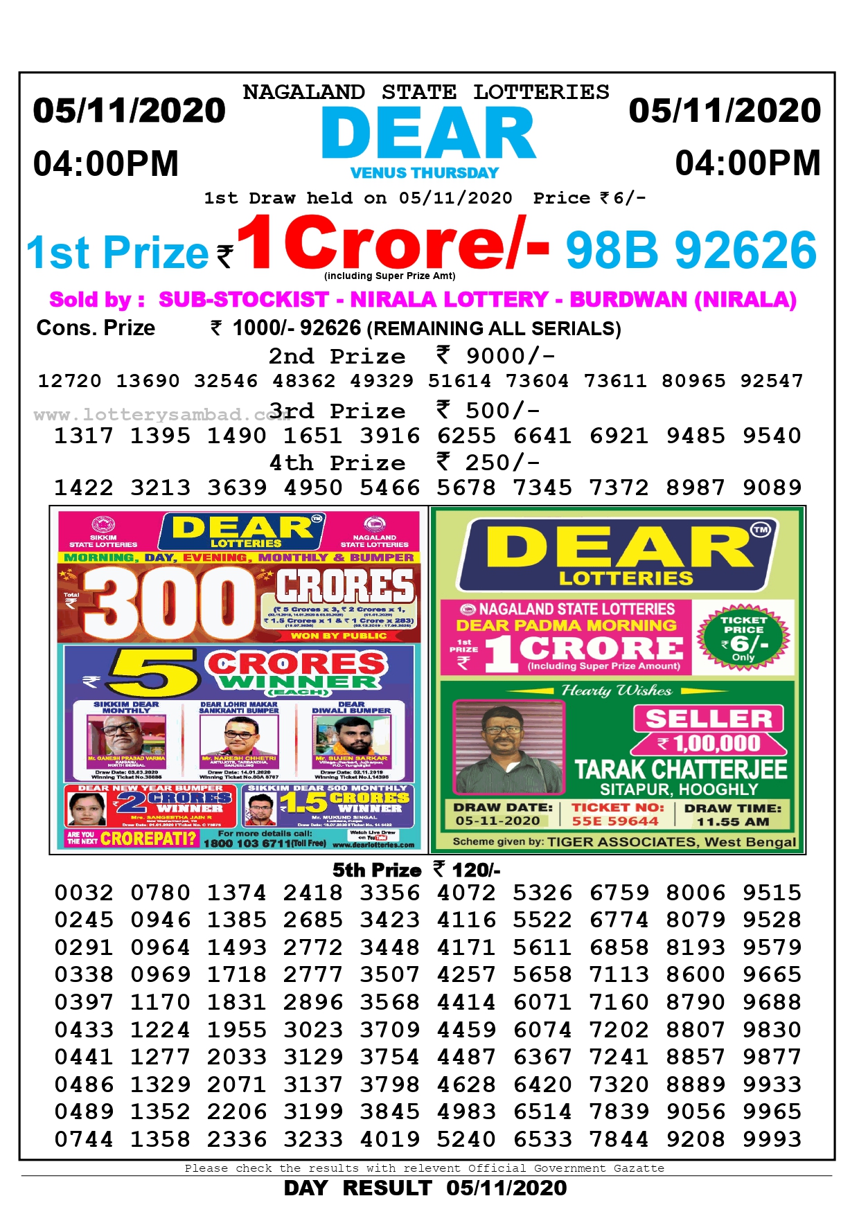 Dear Venus Thursday Weekly Lottery Result 4Pm Dear Venus Thursday Weekly Lottery Result 4Pm - Dear earth lottery sambad first prize winner, second prize winners, 3rd prize winners, 4th prize winners, 5th prize winners are listed below.