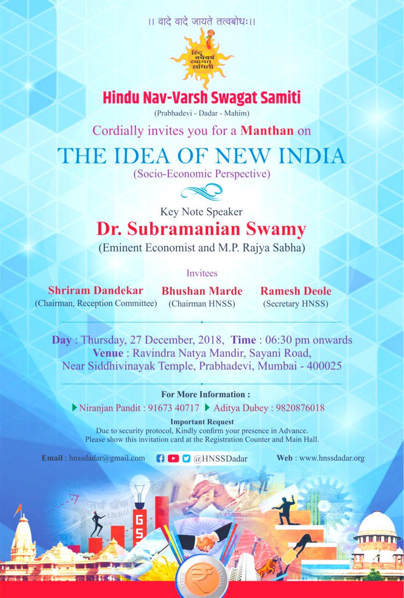 Subramanian Swamy On Twitter I Will Be In Mumbai Today Evening From 6 30 Pm At Ravindra Natya Mandir Prabhadevi Dadar Addressing A Public Meeting On The Idea Of New India Https T Co Kpnblsxqu7 - Required fields are marked *.