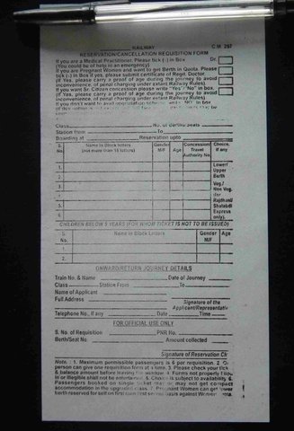 Indian Railway Ticket Form : Once the maximum number of wait listed tickets have been issued, any further reservation requests are refused with regret status.