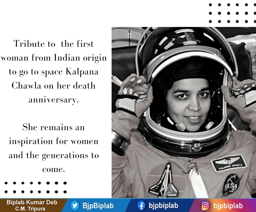 Biplab Kumar Deb On Twitter Astronaut Kalpanachawla Has Shown The World Not To Limit One S Aspirations Where Not Even The Sky Is The Limit My Humble Tribute To The Nation S Daughter Kalpana - Kalpana chawla flew on two shuttle missions.