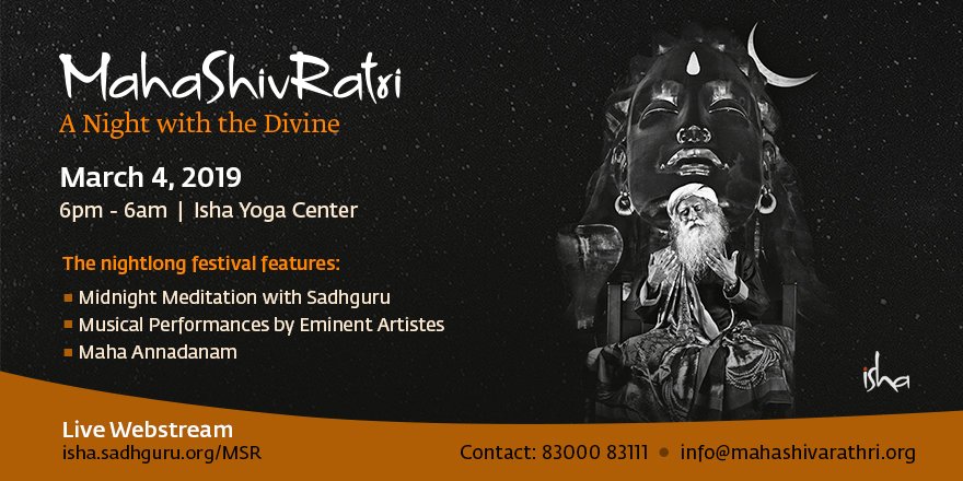 Isha Foundation On Twitter Mark Your Calendars Mahashivratri A Night With The Divine Is On March 4 2019 At The Isha Yoga Center Click Here To Know More Https T Co Uukmxt1o1t Mahashivratri Https T Co Xkrk4yzwoy - Watch the live webcast of.