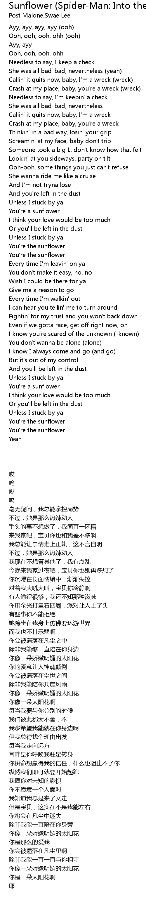 Sunflower Spider Man Into The Spider Verse Lyrics Sunflower Spider Man Into The Spider Verse Lyrics / verse 1 d needless to say, i keep it in check.