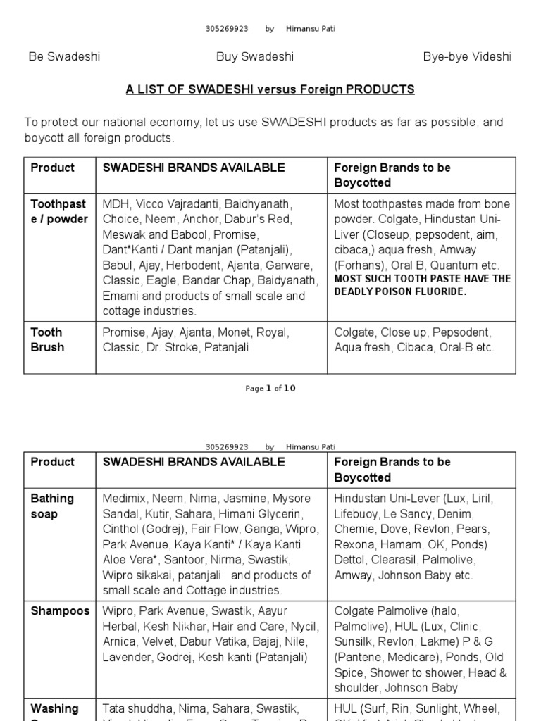 Swadeshi Products List Swadeshi Products List / All indian (swadeshi) product brands list made in india by indians.
